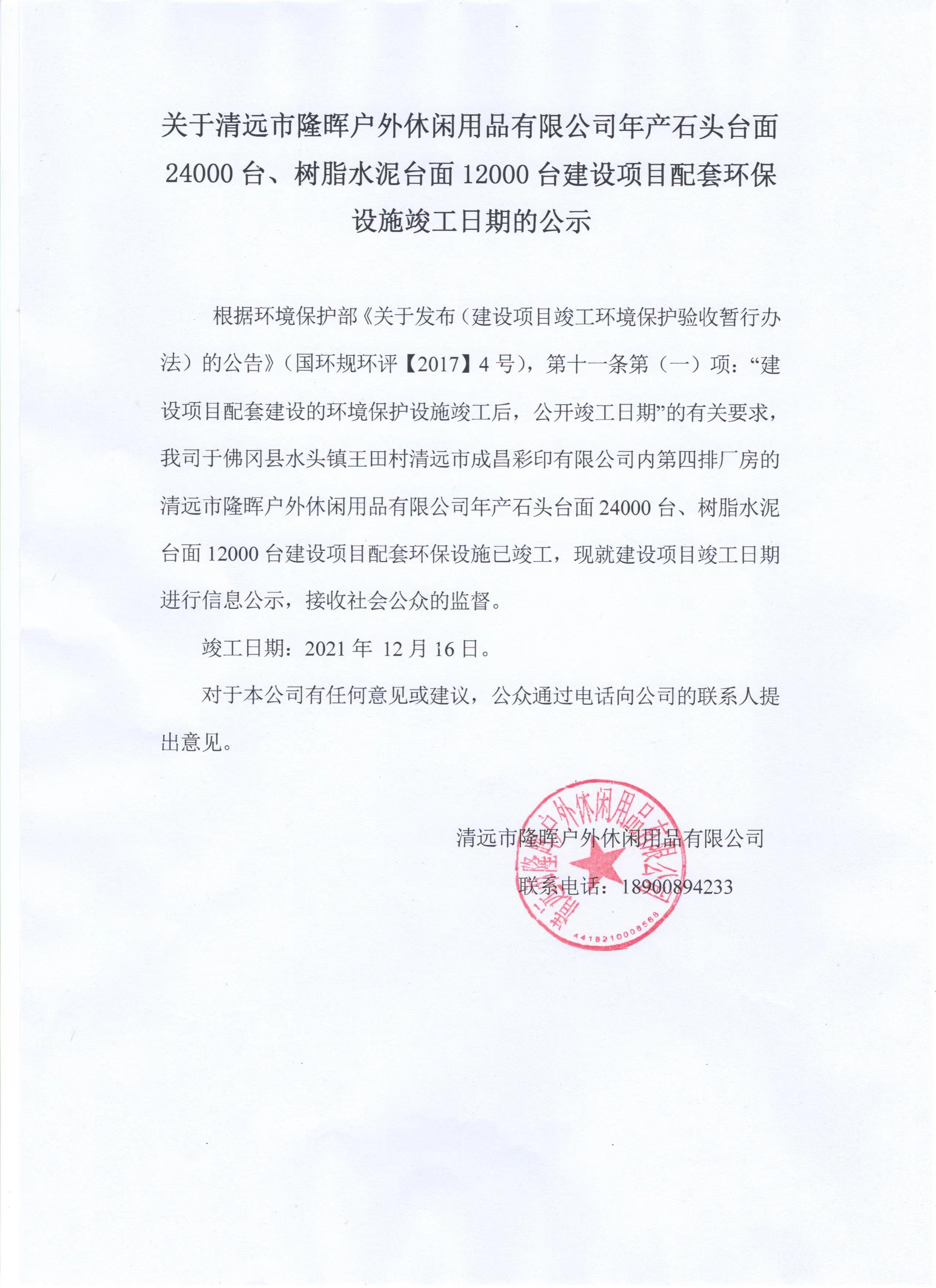 上一頁:關(guān)于清遠(yuǎn)市隆暉戶外休閑用品有限公司年產(chǎn)石頭臺面24000臺、樹脂水泥臺面120...
